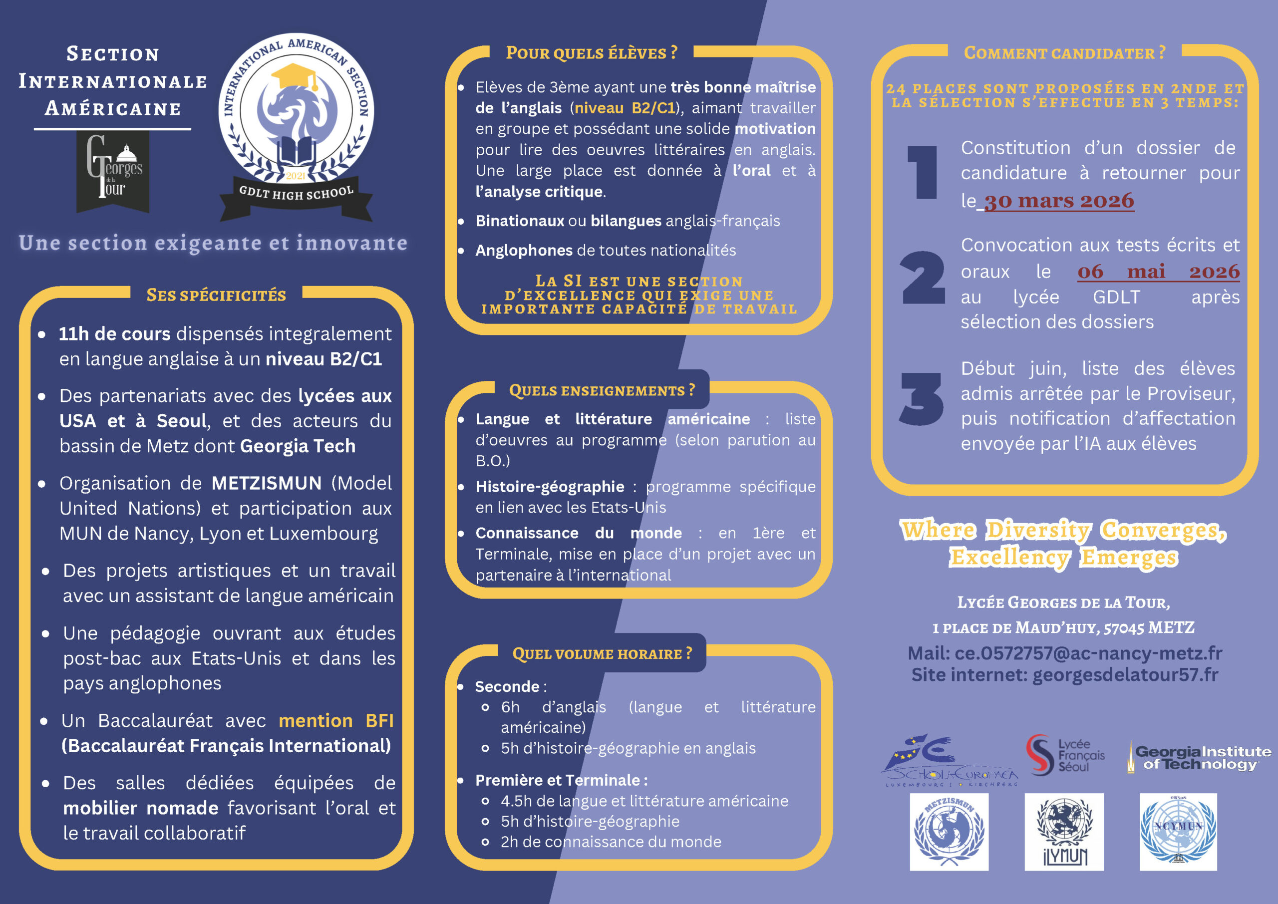 Les dossiers de candidature doivent parvenir complétés au lycée pour le Lundi 30 mars 2026 au plus tard pour l'entrée en Seconde
